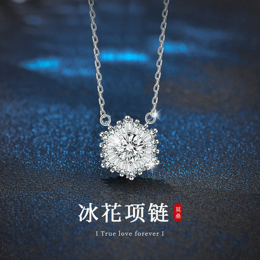 925 Sterling Silver Ice Flower Necklace for Women, Ins Style, High-end D-Color Moissanite Choker Jewelry