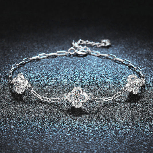 Cross-border S925 Sterling Silver Moissanite Four-Leaf Clover Bracelet High Version Non-Fading Bracelet Queen's Day Jewelry