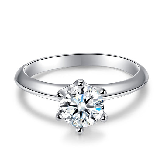 Cross-border foreign trade wholesale classic six-claw moissanite ring for women, 925 sterling silver, fashionable Korean style six-claw ring