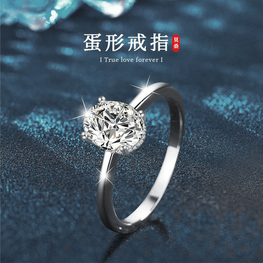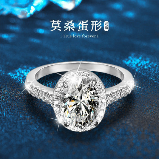 Women's Moissanite Ring, 925 Sterling Silver Oval Pigeon Egg Shape Simulated Diamond Ring, Platinum-tone Color, Cross-border Accessories