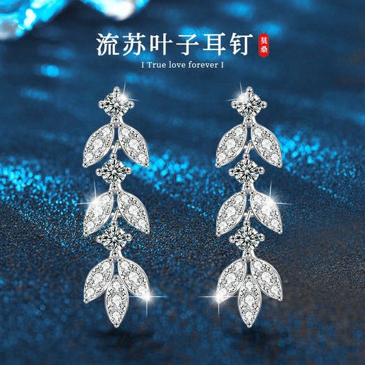 Cross-border Moissanite Leaf Tassel Earrings s925 Silver Earrings Sterling Silver High-end 2024 New Earrings Jewelry