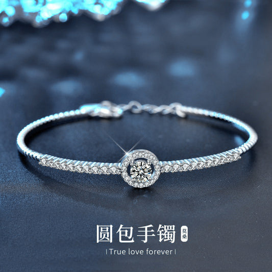 Moissanite 925 silver bracelet, girls' high-end bracelet, open silver bracelet, silver ring, Goddess Day gift accessory