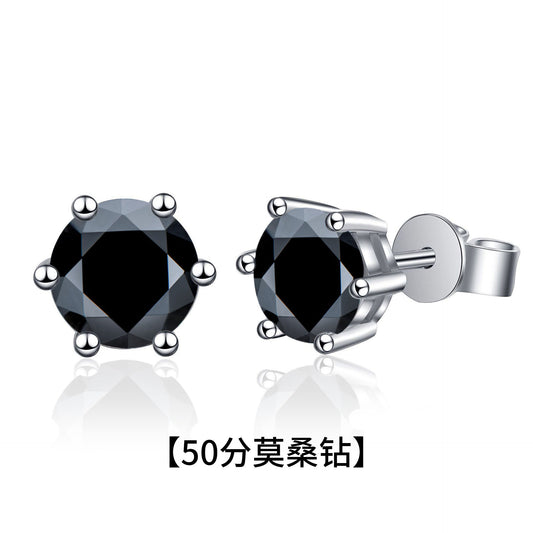 Cross-border Hot-selling Moissanite Fashionable and Elegant Classic Six-Claw Stud Earrings for Women, 925 Sterling Silver Gold-Plated Earrings