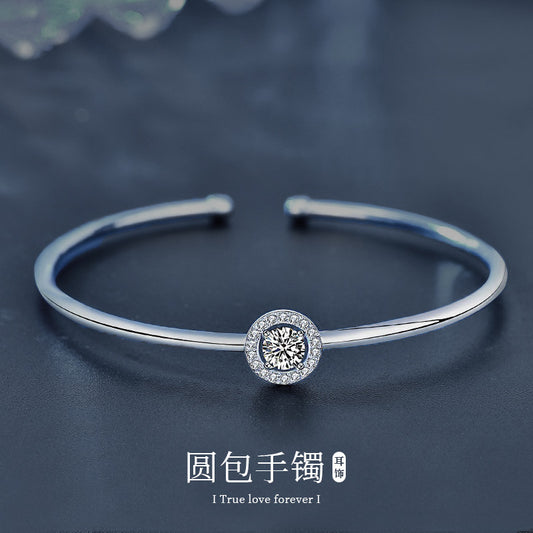 Moissanite 925 Sterling Silver Bracelet Women's Jewelry Simple Open Bangle Silver Jewelry Wholesale Bracelet Round Bangle Ins