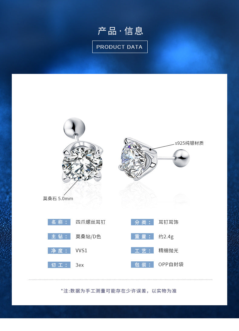 Four-prong screw post earring, 925 silver, simple and unique delicate silver needle earrings