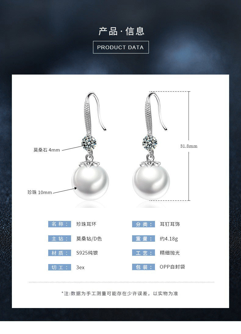Pearl Earring 925 Sterling Silver Moissanite Drop Earrings High-end Tassel Long Earrings